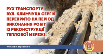 Рух транспорту вул. Климчука Сергія перекрито на період виконання робіт із реконструкції теплової мережіРух транспорту вул. Сергія Климчука перекрито на період виконання робіт. Перекриття дороги пов’язане із реконструкцією теплової мережі, розміщеної в межах проїжджої частини. В межах виконання робіт із реконструкції теплової мережі від теплової…