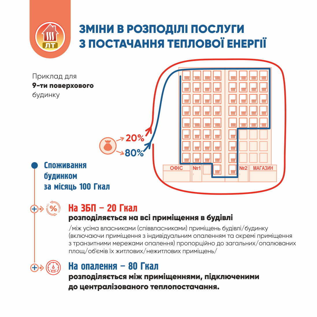 Відповідно до ст. 10 Закону України «Про комерційний облік теплової енергії та водопостачання» Обсяг теплової енергії, витраченої на загальнобудинкові потреби опалення розподіляється відповідно до правил, встановлених цією статтею, також на власників (співвласників) приміщень, обладнаних індивідуальними системами опалення та/або гарячого водопостачання.