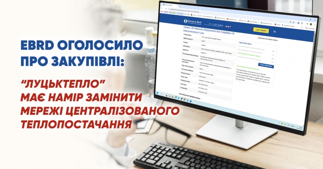 Оскільки фінансування Проєкту також включає співфінансування міського бюджету, частина закупівель щодо заміни теплових мереж та влаштування теплових насосів підлягатимуть українському законодавству та будуть оголошені на належних майданчиках публічних закупівель (як от тендер для реконструкції теплової мережі від ВТ-16 на вул. Кравчука, 26 до ВТ-18 на вул. Кравчука, 34 в м. Луцьку).
