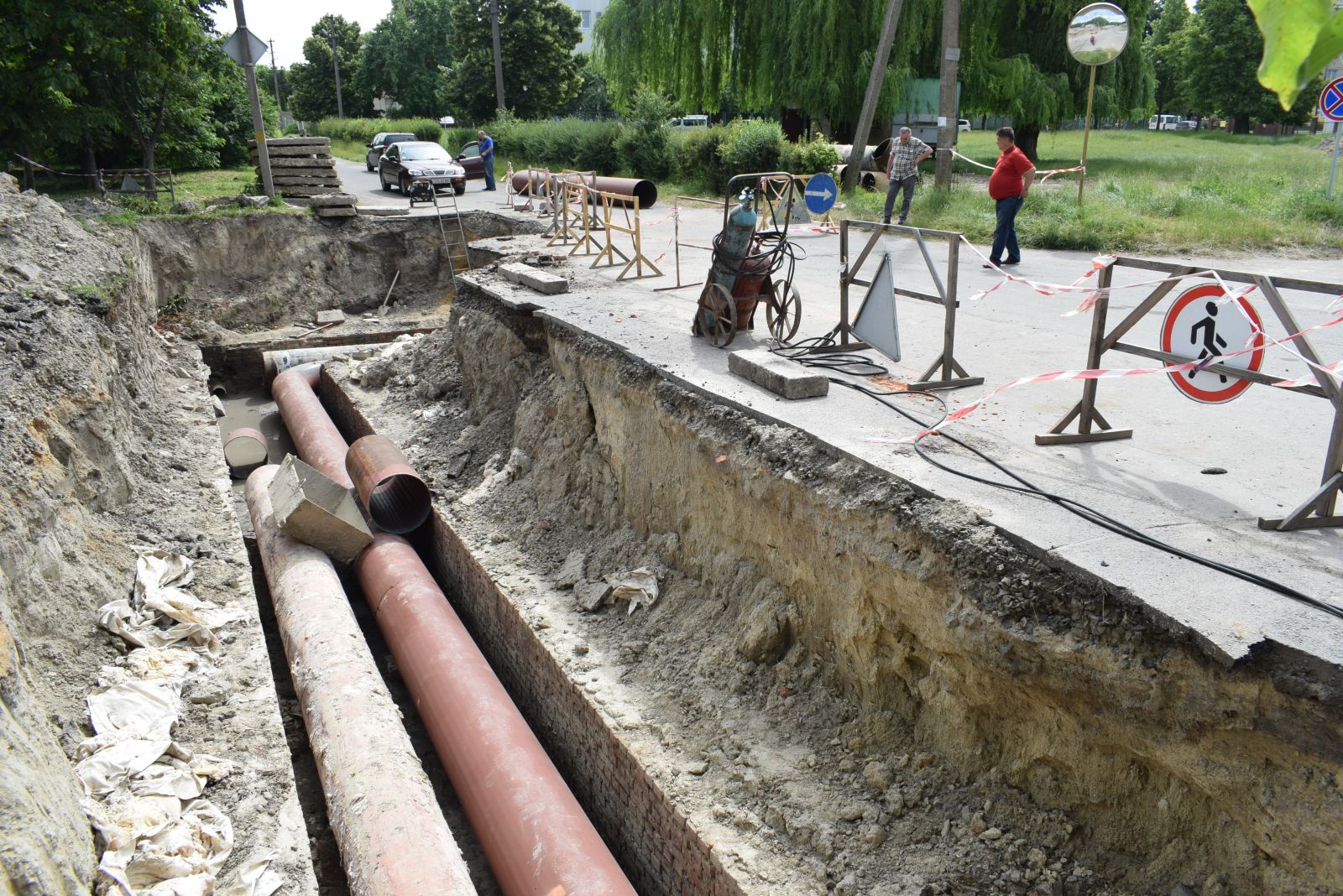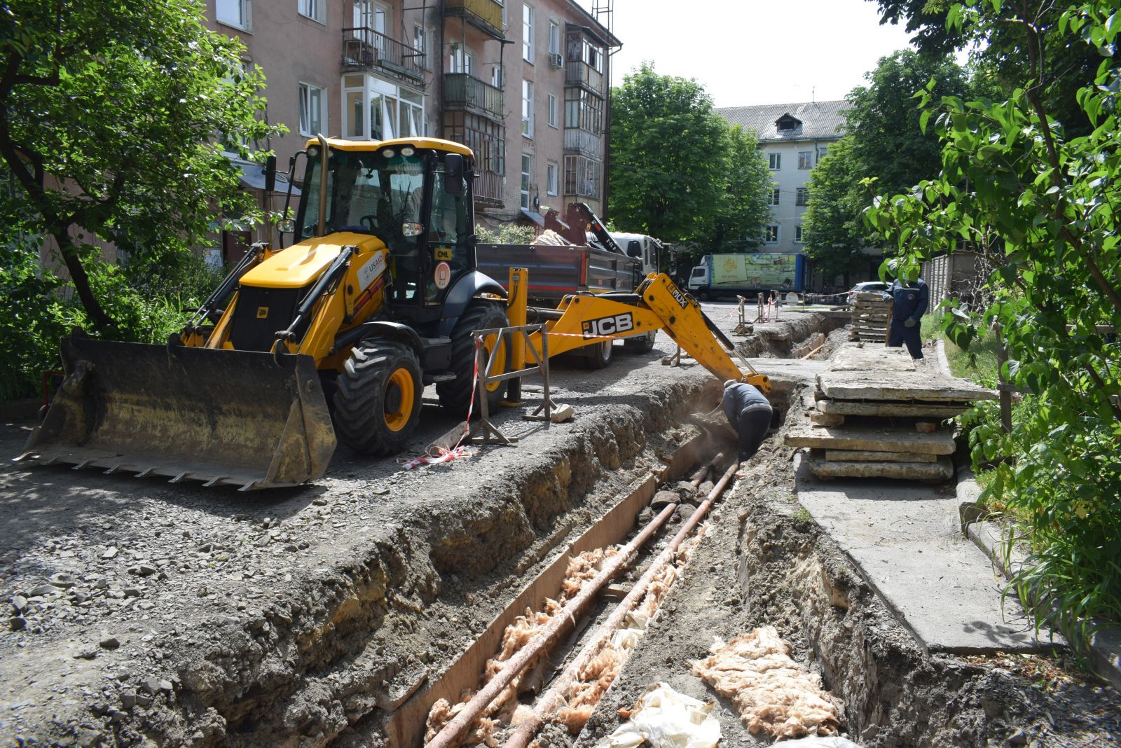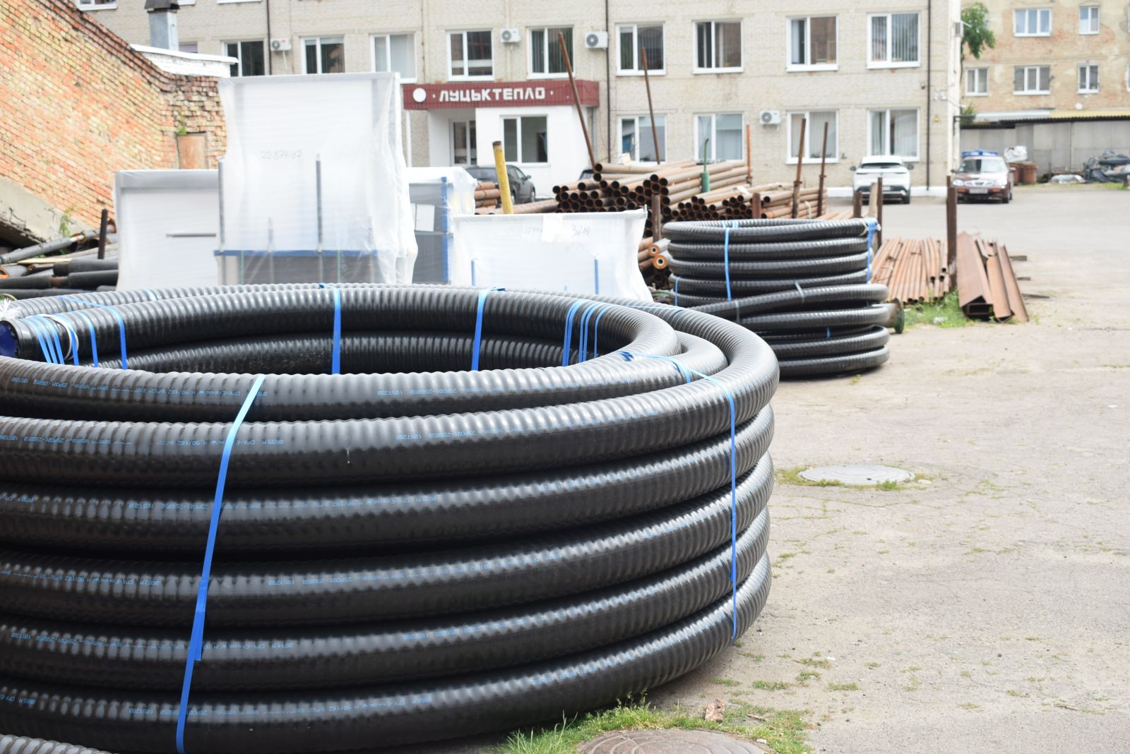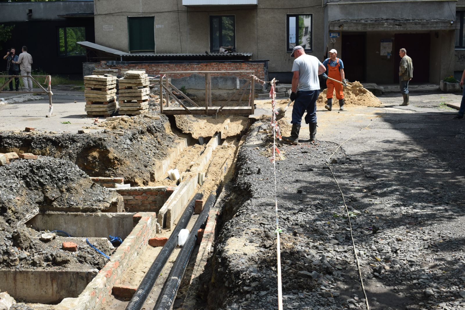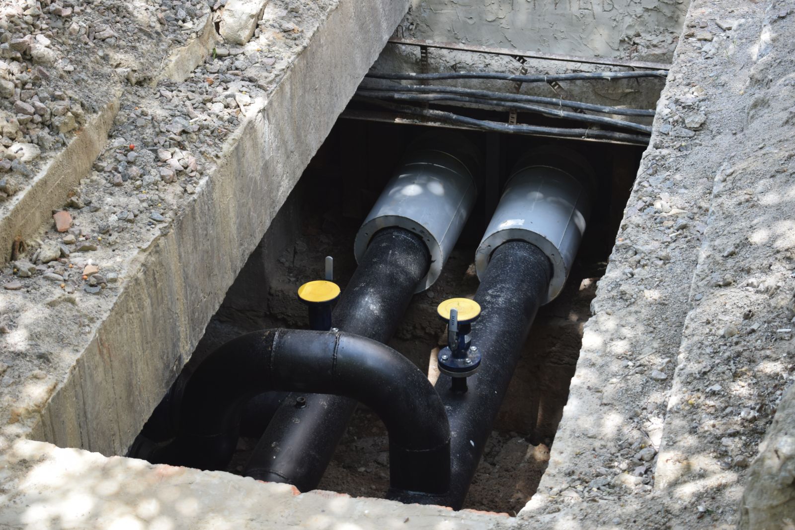 Впродовж червня також виконано роботи із заміни зношених трубопроводів теплової мережі та мережі гарячого водопостачання загальною протяжністю 180 м в дворі на просп. Президента Грушевського, 31-33. Роботи на об’єкті виконувалися із застосуванням нових для підприємства попередньо-ізольованих гнучких труб CALPEX із провідною трубою зі структурованого поліетилену PE-Xa, ізоляцією зі спіненого поліуретану на основі циклопентану, антидифузійним шаром EVON та захисною гофрованою поліетиленовою оболонкою.