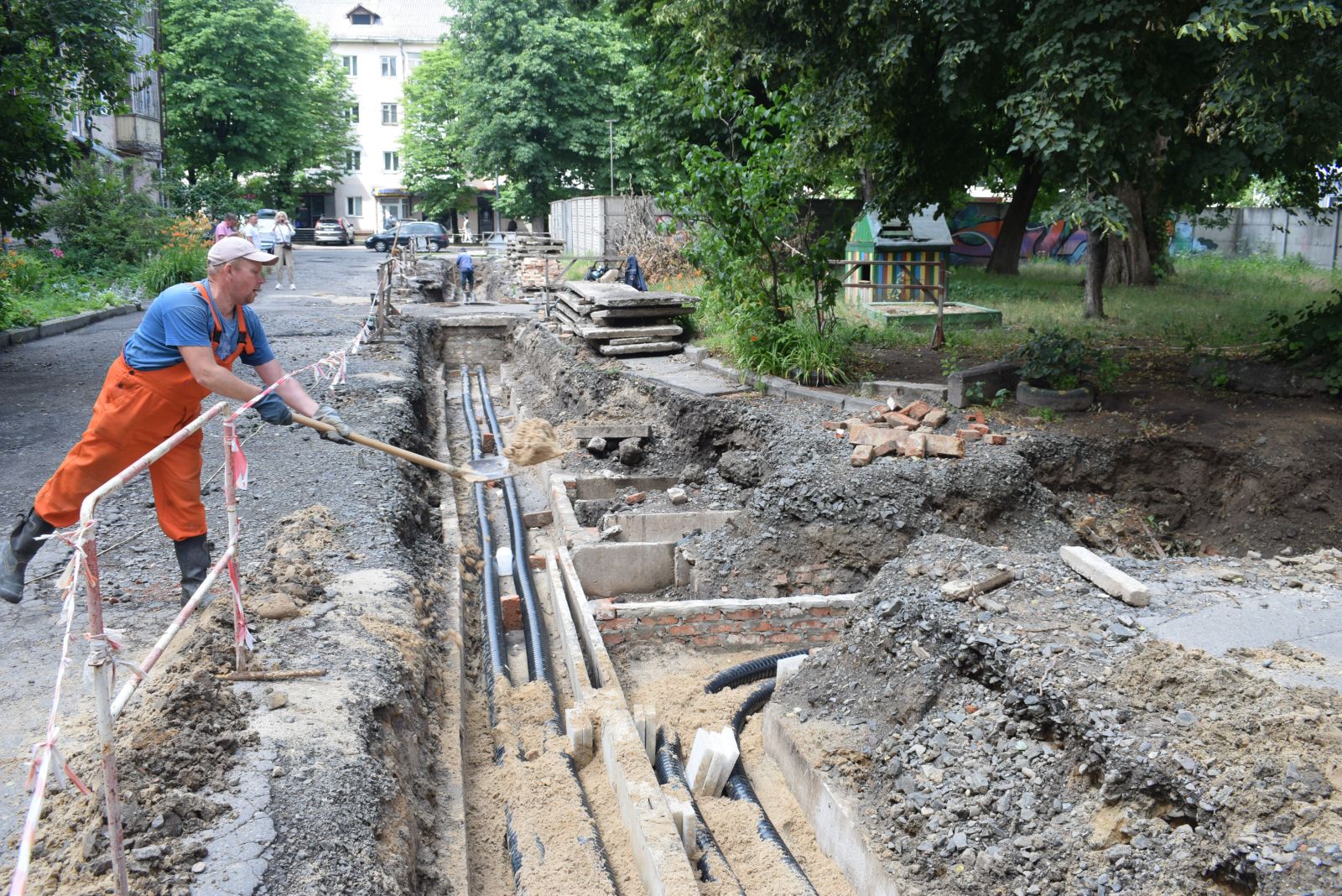 Разом із тим, впродовж червня завершувалися роботи із заміни аварійних теплових мереж на нові попередньо-ізольовані на вул. Наливайка, 8 – 8-А та на вул. Володимирській, 95. Так на вул. Наливайка йшлося про завершення робіт з монтажу трубопроводів опалення, влаштування нерухомих опор та відновлення благоустрою, тоді як на вул. Володимирській тривали роботи із монтажу трубопроводів опалення та гарячого водопостачання на другій ділянці даного об’єкту: від теплової камери до житлового будинку на вул. Володимирській, 95. Станом на кінець червня на об’єкті завершилися монтажні роботи та відновлено подачу гарячої води для мешканців будинків на вул. Володимирській, 95 і 96. Нині на об’єкті тривають роботи із відновлення благоустрою.