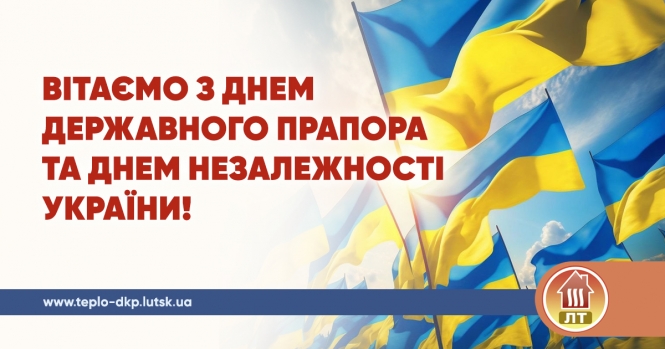 Колектив ДКП «Луцьктепло» щиро вітає українців із Днем Державного Прапора та Днем Незалежності України.