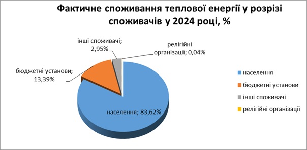 Фактичне споживання теплової енергії у розрізі споживачів у 2024 році наведено на рисунку 1.