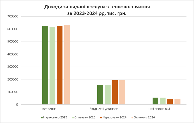 458,781 тис. Гкал, однак фактично було відпущено 312,722 тис. Гкал теплової енергії, що на 146,059 тис. Гкал менше, зокрема, населенню – 261,479 тис. Гкал, бюджетним організаціям та установам – 41,872 тис. Гкал, іншим споживачам – 9,236 тис. Гкал, релігійним організаціям – 0,135 тис. Гкал.