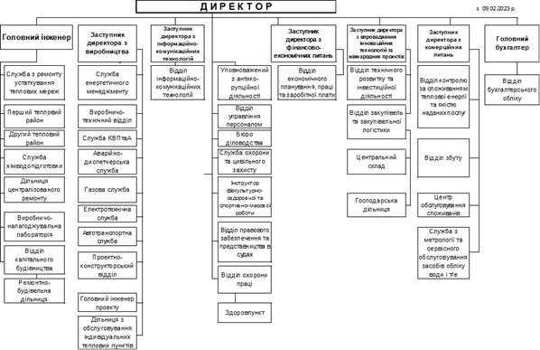 Трудові договори із працівниками підприємства укладає директор, керуючись чинним законодавством України. Чинна організаційна структура ДКП «Луцьктепло» наведена нижче на рисунку 3.