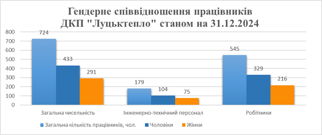 Рис. 6. Гендерне співвідношення працівників ДКП «Луцьктепло» станом на 31.12.2024